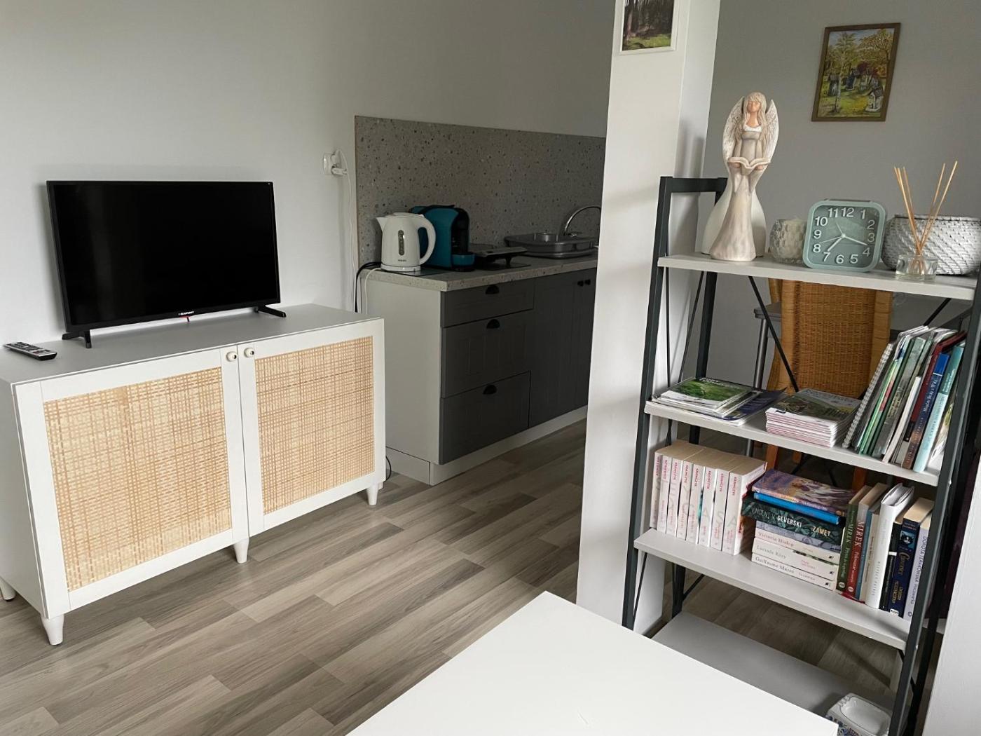 Dom wakacyjny. Guests will find a stovetop, a refrigerator, kitchenware and a microwave in the kitchen. The holiday home also features a barbecue. The holiday home offers a washing machine, a private entrance, a terrace with lake views as well as a shared bathroom boasting a shower. The unit has 3 beds. Dom wakacyjny - 4 osobowy. Powierzchnia pokoju ok.: 45 mkw.